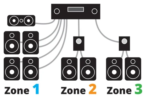 Now you can enjoy immersive experience in your living room(zone1) and also enjoy music in other room(zone2, zone3, etc.).